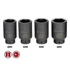 The Powerbuilt 4 Piece Axle Nut Socket Set is specifically designed for quick and easy removal or installation of front-wheel-drive axle nuts. This set is built to last a lifetime with impact-rated, 6-point chrome vanadium sockets and contains 30mm, 32mm, 34mm, and 36mm sockets to cover almost all applications. Deep sockets are designed to ensure fitment on a variety of axle lengths. Kit Includes Heavy Duty Carry Case with usage photos and Detailed instructions.