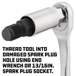 For repairing damaged or dirty threads in spark plug holes. 14mm and 18mm threads. Rubber O-ring holds tool firmly in place in 13/16-in socket when in use. Meets or exceeds ANSI standards. Lifetime warranty