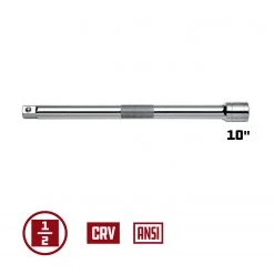 The Powerbuilt 1/2 Inch Drive 10 Inch Extension is the perfect socket extension. It’s made from high-quality Chrome Vanadium steel with a mirror polished chrome plated finish for durability and long tool life. Extensions are perfect solution tools for when accessing hard-to-reach places like when working in and around engines, under the chassis, or any other jobs that require a longer reach in a tight space. Each extension features knurling on the center of the shaft for a secure grip to allow for quicker rotation when tightening or loosening fasteners. No need to worry about dropping sockets into narrow spaces the Powerbuilt extensions also feature spring-loaded detent balls to help lock into and secure the sockets for worry-free retention.