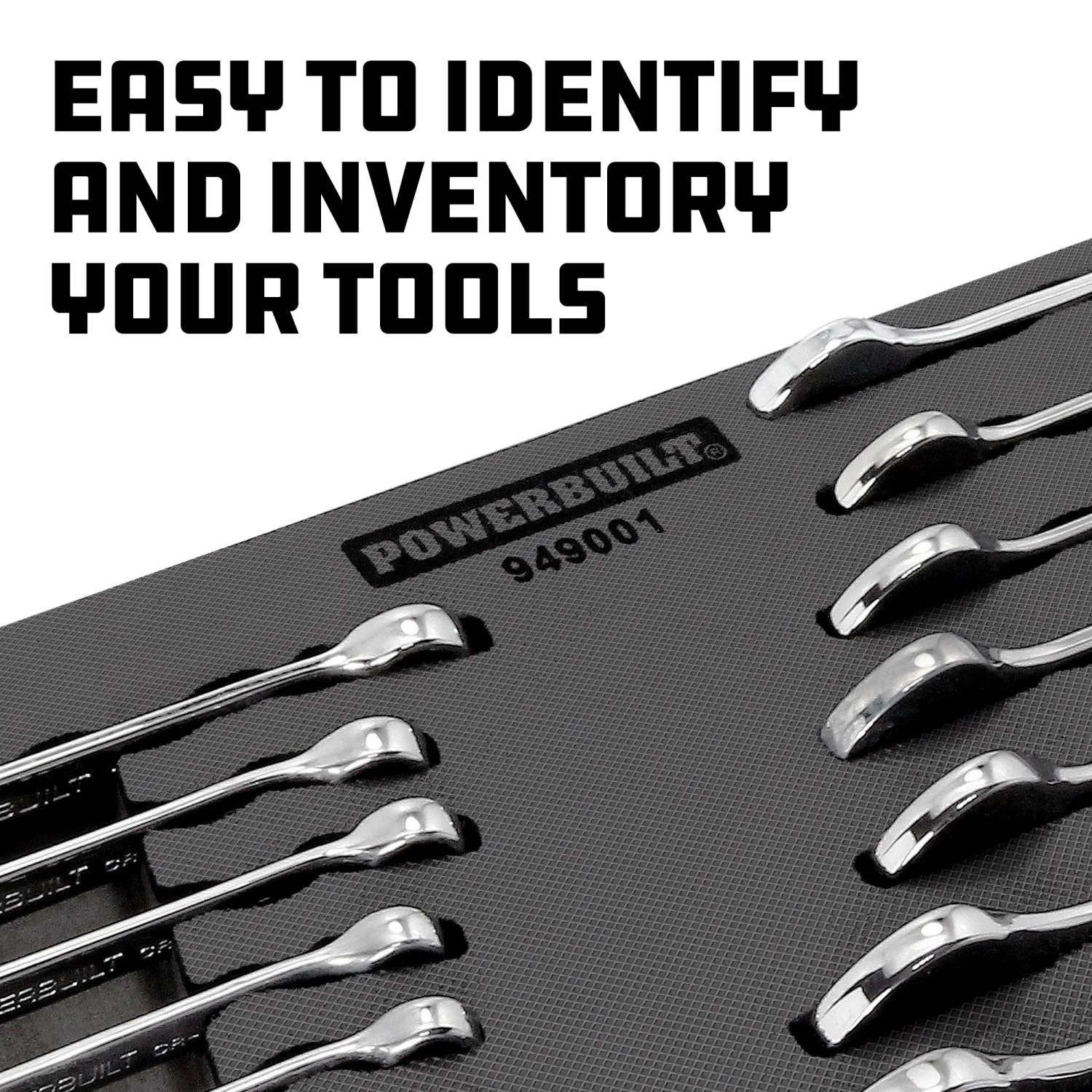 Premium tools and an organized workspace are the mark of professionals and serious home do it yourselfers. The Powerbuilt 16 Piece Pro Tech Metric Combination Wrench Set provides both. This 16 piece set is a professional level wrench set and tray designed to drop into any standard toolbox drawer. The combination wrenches have chamfered edges on both open and box ends for easier mating and reducing slippage on fasteners. The box end also features Z-Drive™ broaching for a stronger grip on fasteners. All wrenches are made of premium Chrome Vanadium steel with a mirror polished chrome plated finish. Wrench set comes in a custom laser-cut EVA foam tray that fits in box drawer to keep tools organized and secure. Powerbuilt Professional Technician combination wrenches are built to meet or exceed ANSI specifications for length, torque and hardness.