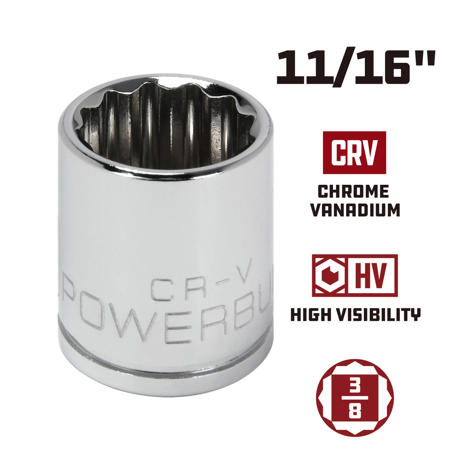 Outlet 🤩 Powerbuilt 3/8 Inch Drive x 11/16 Inch 12 Point Shallow Socket – 641007 🎉