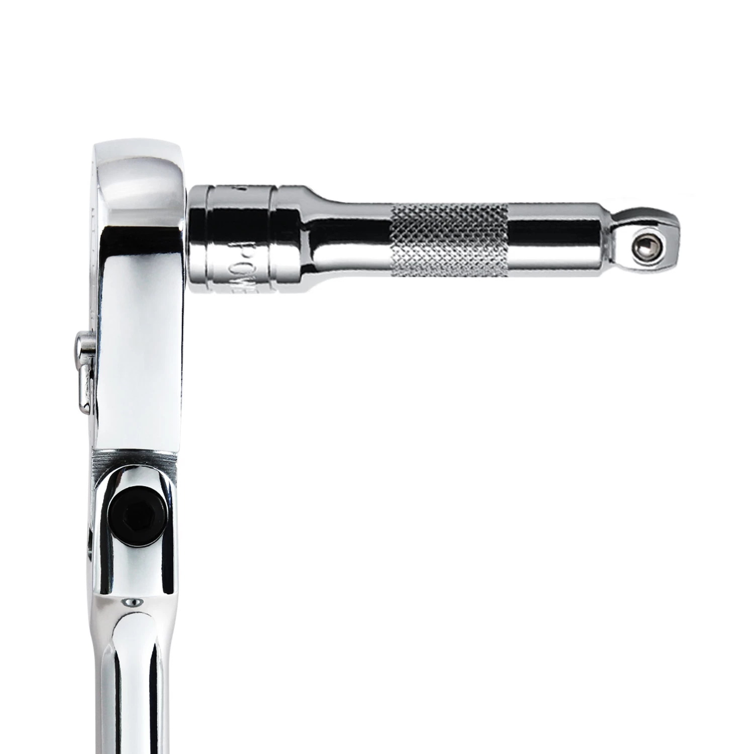 Reach that unreachable fastener in a flash with Powerbuilt socket extension bars. Just pop it onto your ratchet to add reach to your socket. Perfect for reaching spark plugs and distant nuts and bolts everywhere on your car or truck. And for even more flexibility, the wobble style male end drives sockets at angles up to 20 degrees from vertical. Built using strong chrome vanadium steel these stylish extension bars have knurled centers and grease rings for superior no-slip grip. Precision fit securely holds sockets and eliminates slop. Dependable Powerbuilt socket extension bars meet or exceed ANSI standards and have a lifetime warranty, all at affordable prices.