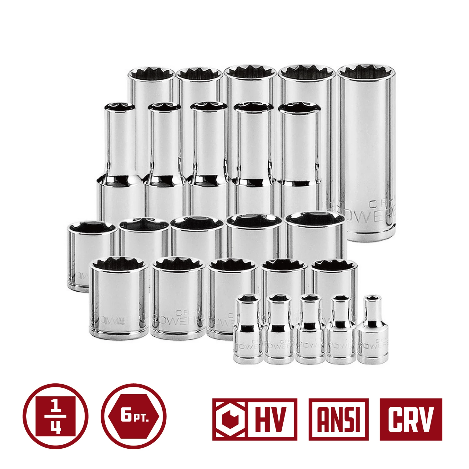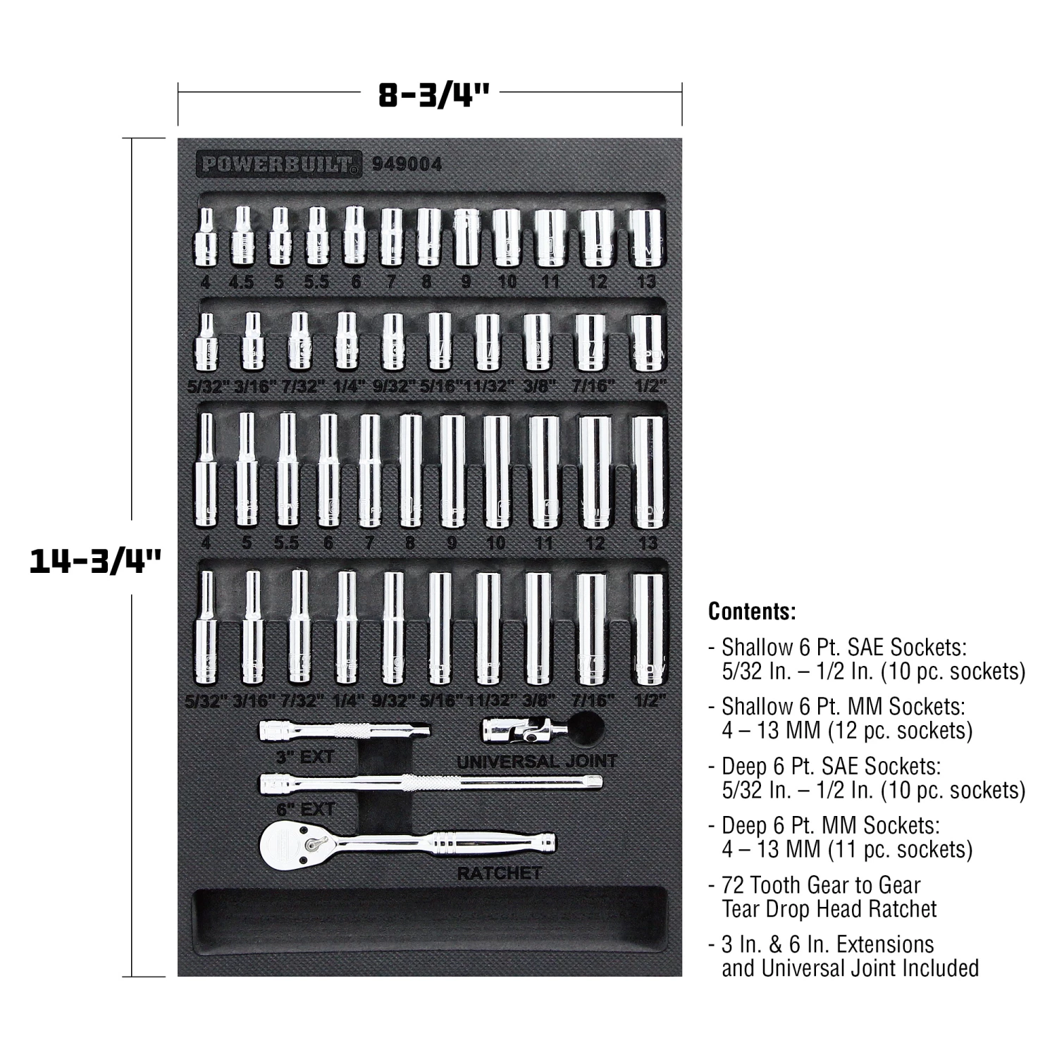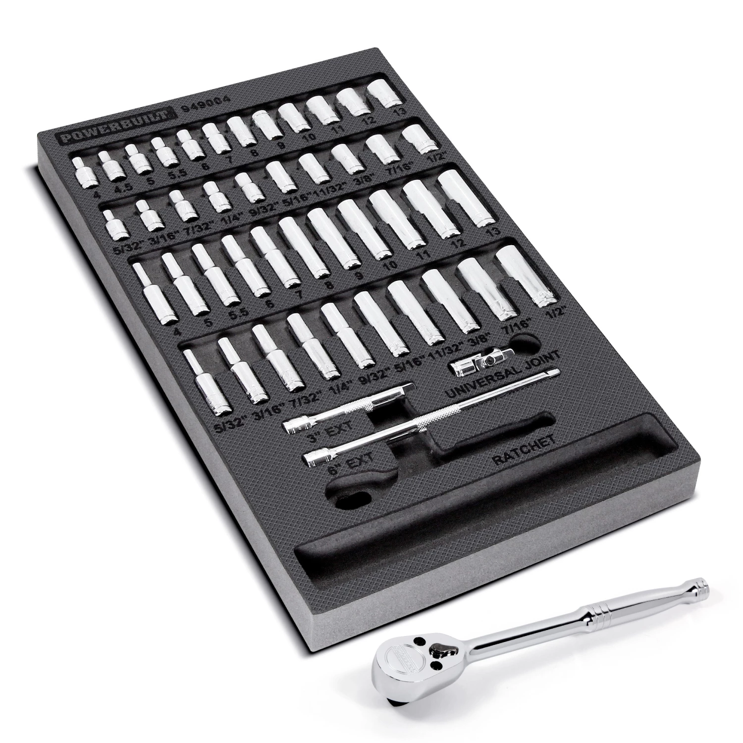 Outlet ✨ Powerbuilt 47 Piece Pro Tech 1/4 in. Dr. SAE & Metric Socket Set – 949004 ⌛