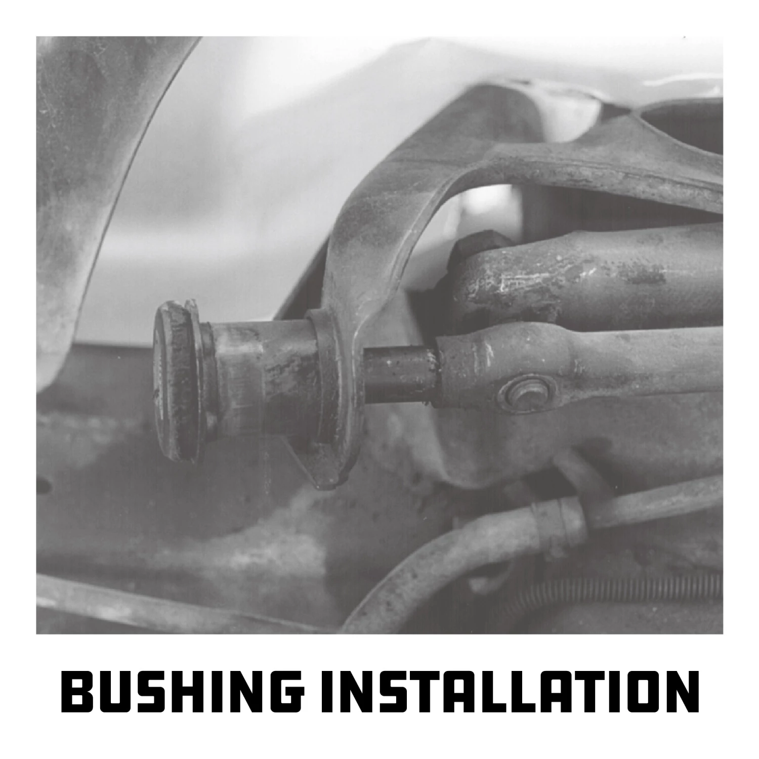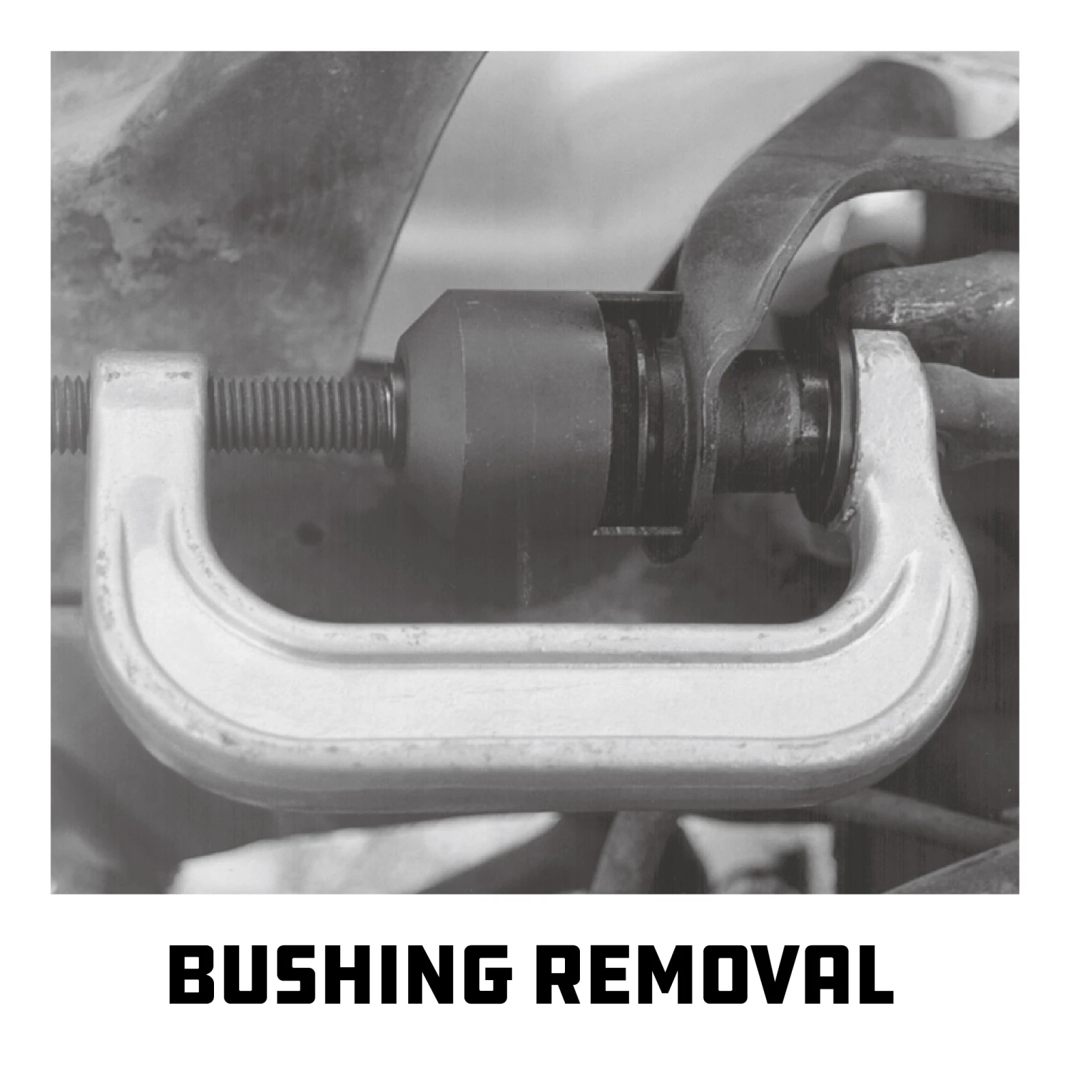 Upper Control Arm Bushing Service Set is specially designed for safe, versatile, and easy maintenance for a wide array of vehicles. Allows for removal and installation of press-in type bushings without the hassle of control arm removal. Smooth bushing removal and replacement with the included C-clamp press. Supplied adapters work on press-type bushing for GM, Ford, and Chrysler rear-wheel drive vehicles. This 11-piece set comes in a rugged heavy-duty carry case with easy-to-read detailed instructions and usage photos.