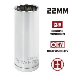 Powerbuilt® 1/2″ Drive 22mm 12 Pt. Metric Deep Socket – 940163