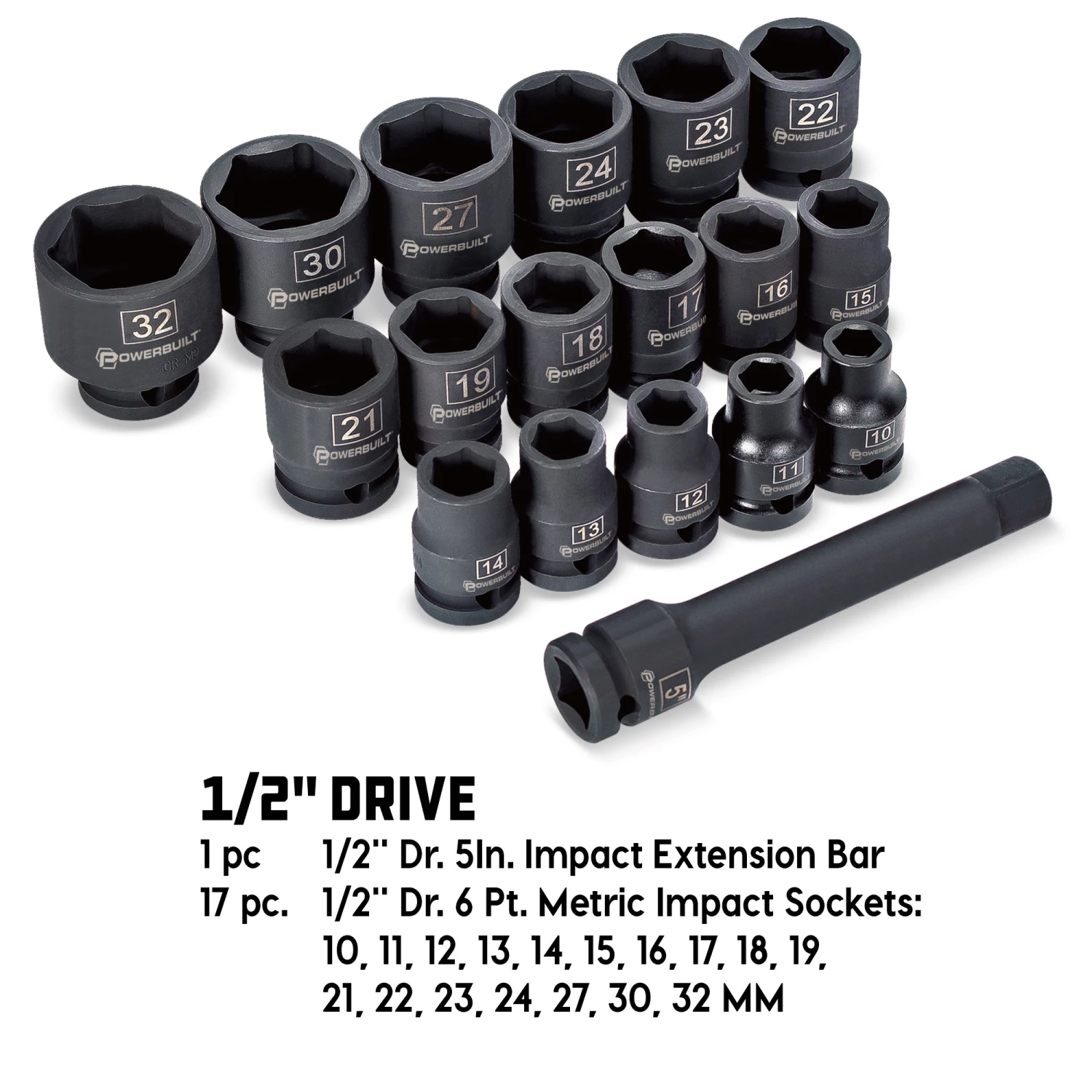 Promo 🛒 Powerbuilt 18 Piece 1/2 Inch Drive 6 Point Metric Impact Socket Set – 940838 😀