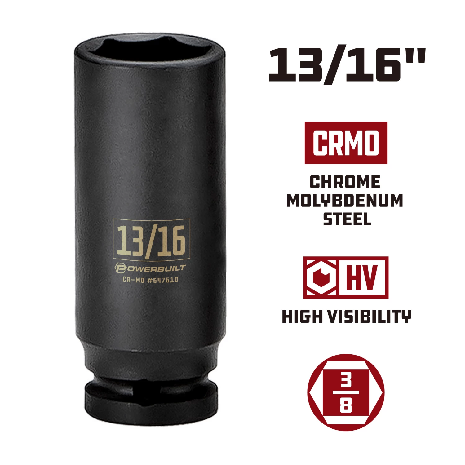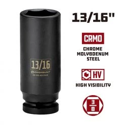 - 3/8″ drive 13/16″ impact deep well 6 point socket