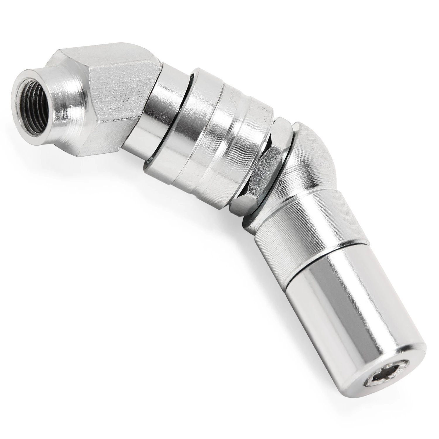 For hard to reach grease fittings. 6000 PSI working pressure. Ball bearing joints for unrestricted movement. O-ring seals prevent leaks. 1/8-in NPT threads fit most grease guns and couplers.