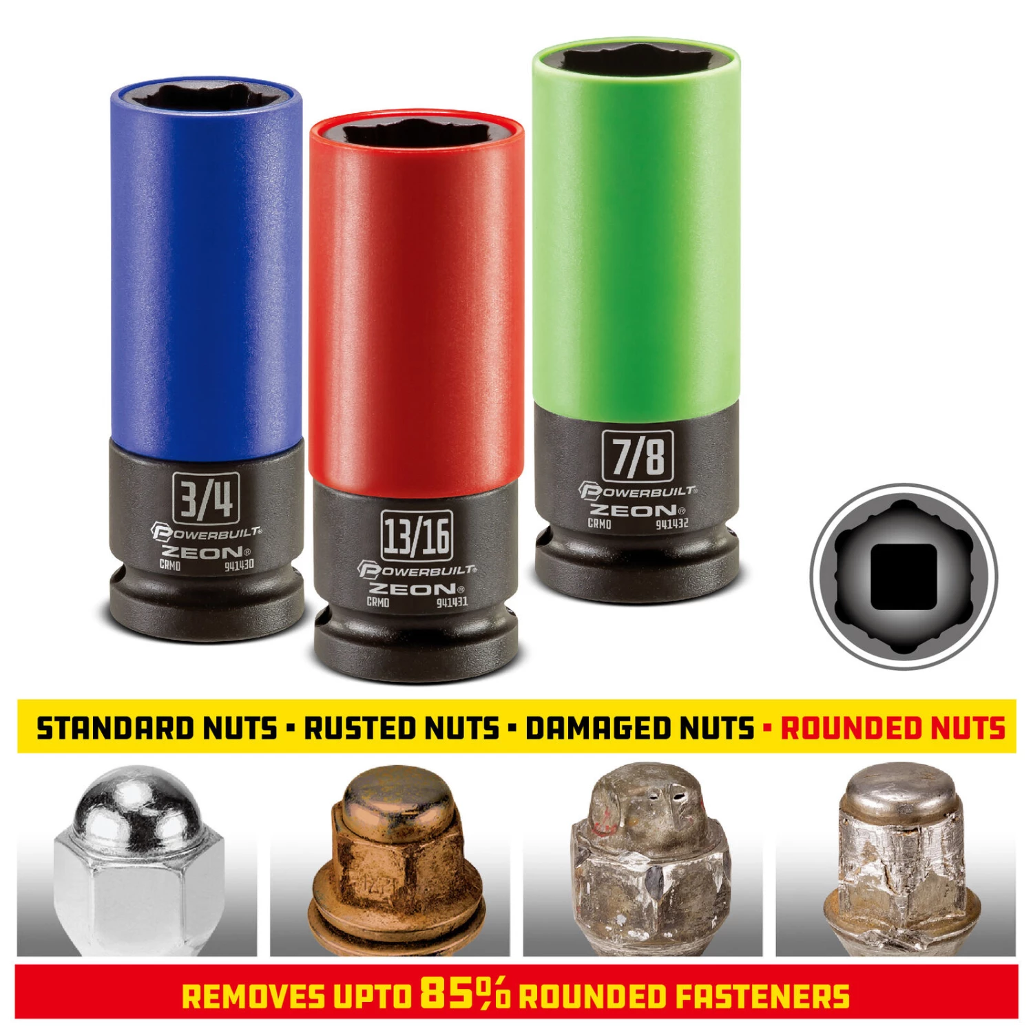 Promo 💯 Powerbuilt 3pc. Zeon SAE Lug Nut Socket Set 🌟