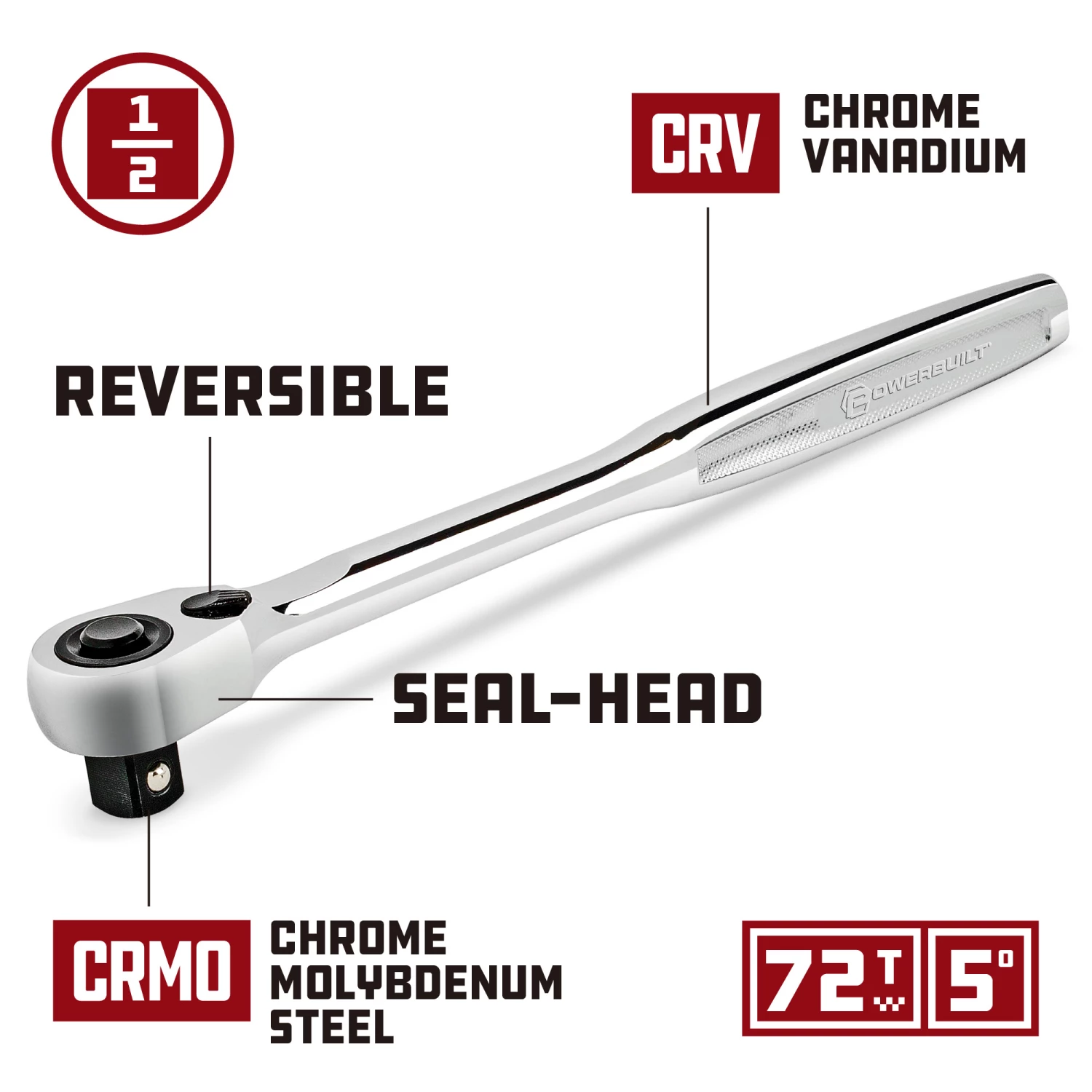 Top 10 ๐งจ Powerbuilt 1/2 Inch Drive72 Tooth Pro Tech Ratchet with Contour Handle – 649970 ๐