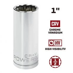 - Powerbuilt chrome sockets feature HV high visibility size markings that are three times larger for easy size selection.